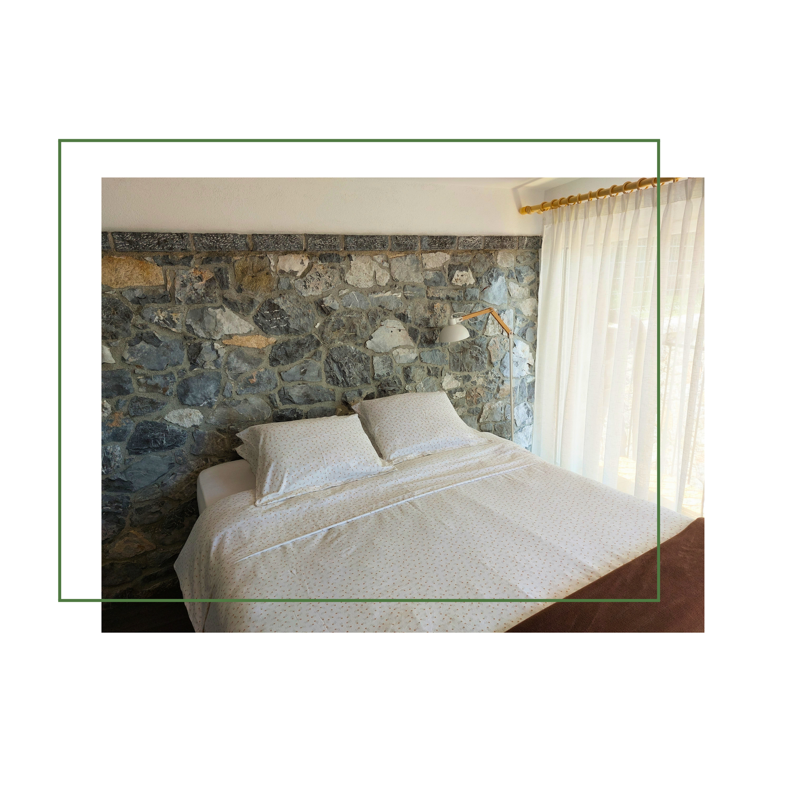 Elegant room with a private balcony overlooking the lush garden. Features a seating area, air conditioning, flat-screen TV, and a private bathroom. Perfect for couples seeking a romantic escape.